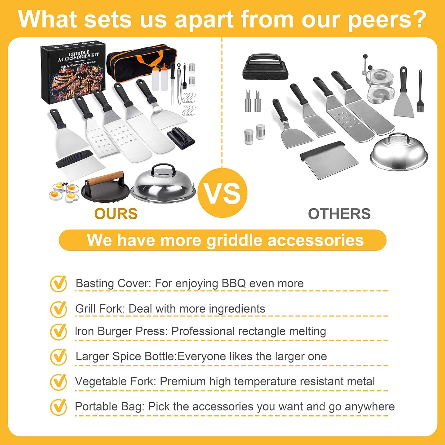- 【Premium Quality Stainless Steel】Crafted from high-grade stainless steel,our blackstone accessories are built to withstand high heat and resist rust,ensuring durability and safety while you enjoy cooking without worries of bending or breaking.