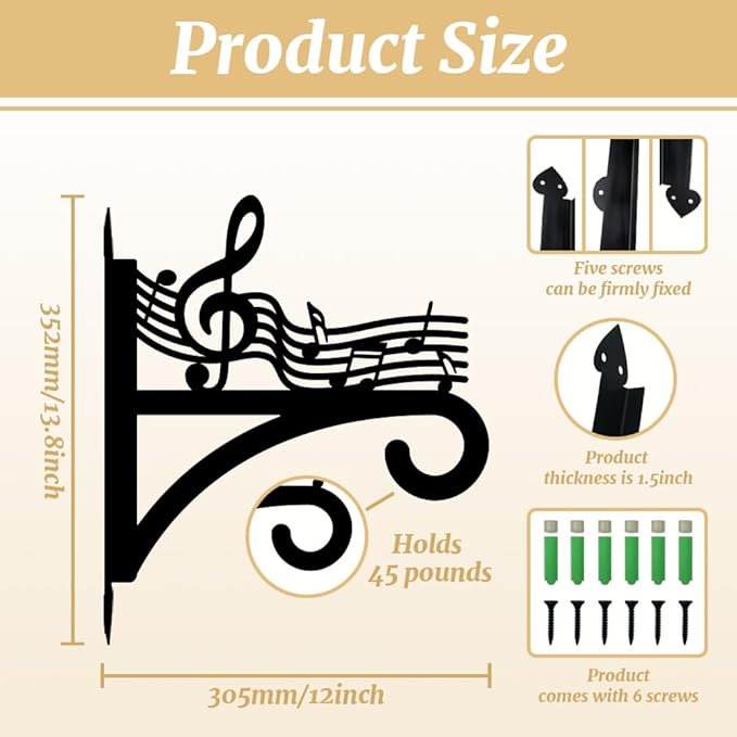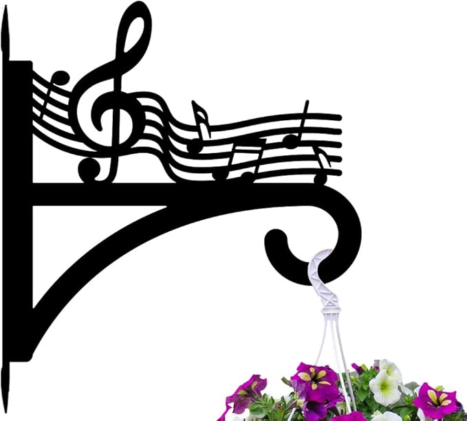 peacoblue Iron Plant Hangers Hooks for Outdoor Indoor Hanging Plants Flower Fern Pots Lantern Bird Feeder,12"x13.8" Weather Resistant Metal Wall Holder for Porch Garden Farmhouse(Music Notes)