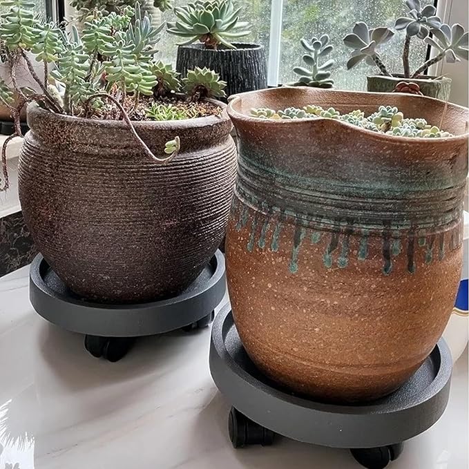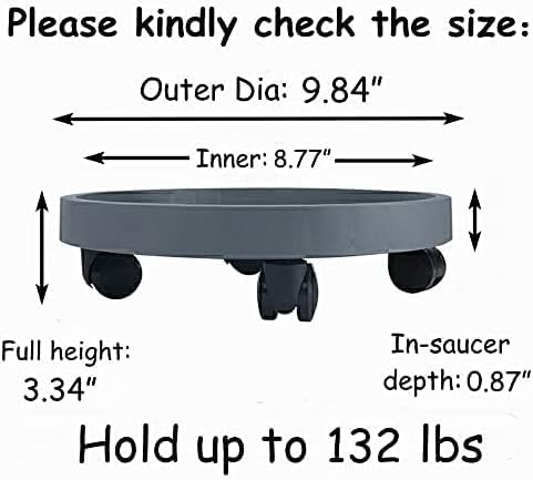 - [Indoor & Outdoor Practical Use]: It's designed to run on patios, wooden floors for outdoors. Also the caddy rolls smoothly over hardwood, concrete, and even carpet, which is perfect for indoor use. Not only suitable for plant pots, but also for anything in your home that needs to be moved, such as an umbrella, humidifier. Three available colors and sizes to perfectly match your home decor or garden.