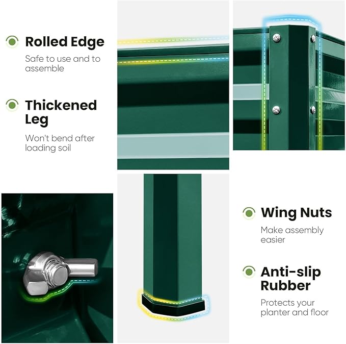 - 【Sturdy & Durable, Capacity: 250 lbs】Our galvanized steel planter raised bed is rust-resistant, sturdy, and can support up to 250 lbs. More durable than wooden raised garden bed kit, it ensures a longer lifespan without the worry of cracking or warping.