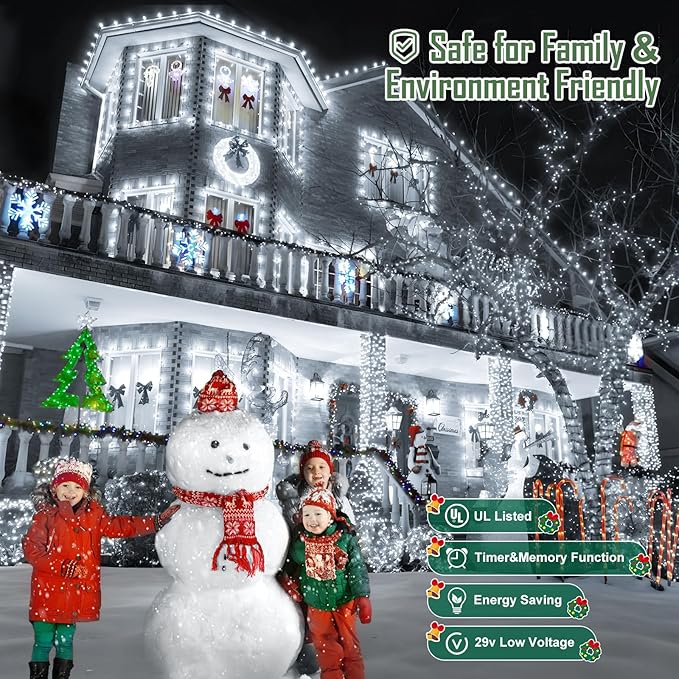 - Safety String Lights: 29V low voltage plug with UL certified, ensuring your Christmas lights are safer than ever. Great for creating a festive vibe in your home, from the front porch to the garden, or everywhere outdoors. Ideal for all holiday decor needs