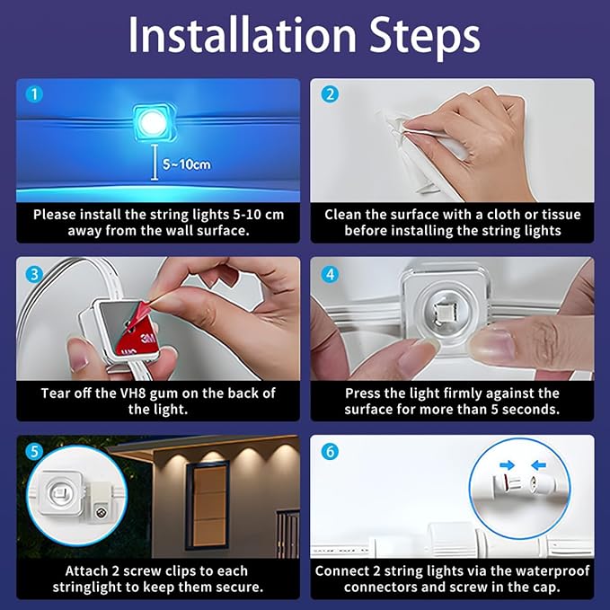 - Multicolor Lighting: The permanent outdoor lights offer 54 different scene modes and allow you to choose from 16 million colors, providing a wide range of options to decorate your house for Christmas parties