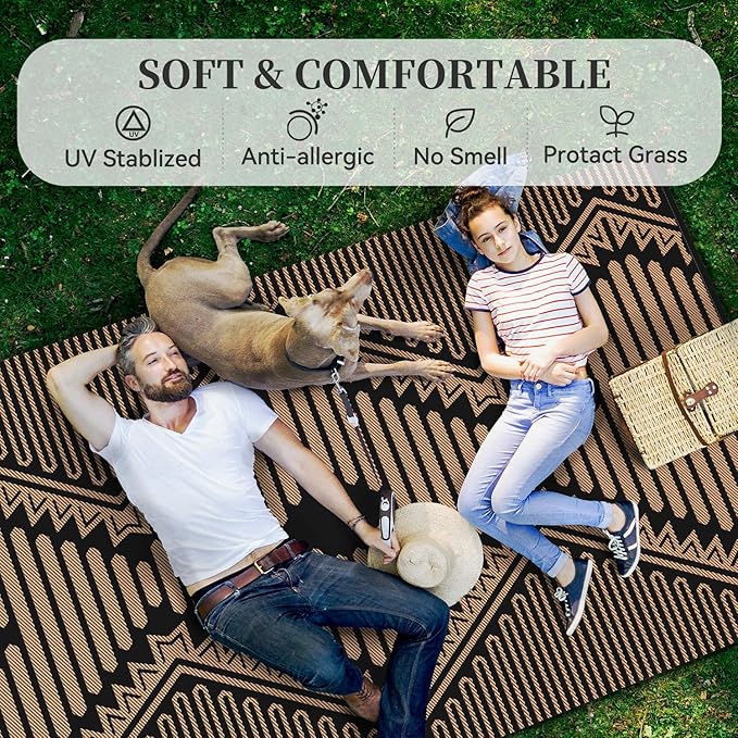 - Lightweight&Versatile: These large outdoor rugs are easy to move, making them perfect patio and camping accessories and decor. They can be used as outdoor patio rugs under furniture sets, balcony rugs, pool deck rugs, porch rugs, RV outdoor rugs, outdoor camping rugs, beach mats, picnic mats.
