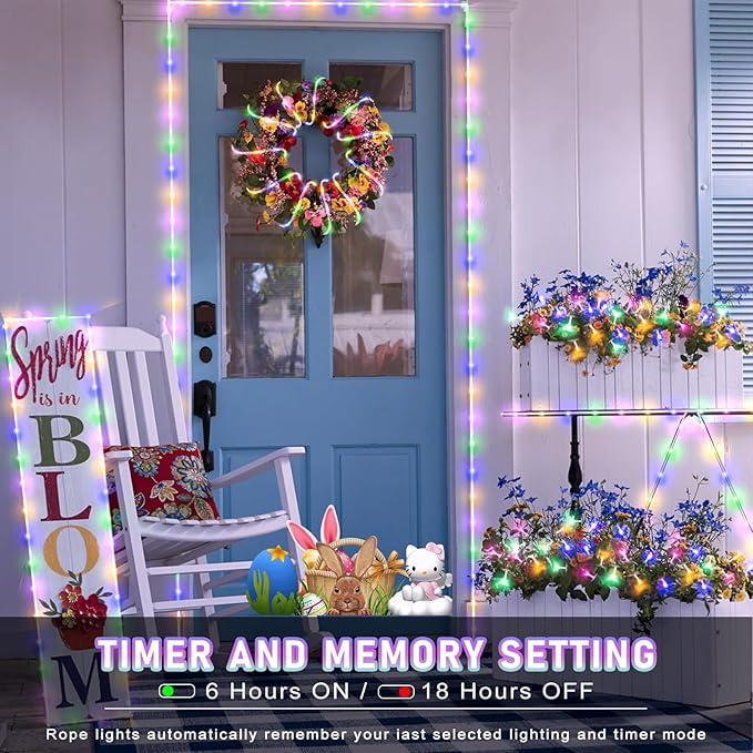 Easter Lights, 100FT 300 LED Rope Lights Outdoor, Plug in String Lights with Waterproof 8 Modes, Connectable Twinkle Light for Indoor House Patio Garden Party Decorations, Pastel Multicolor