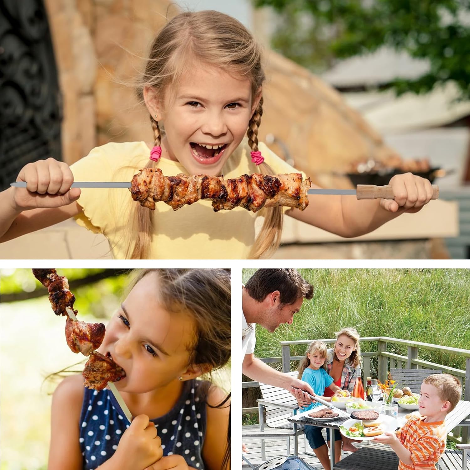 - Versatile Kabob Skewers: These flat skewers are perfect for making delicious kabob skewers with meats, vegetables, and seafood. Great for backyard barbecues, picnics, and family gatherings