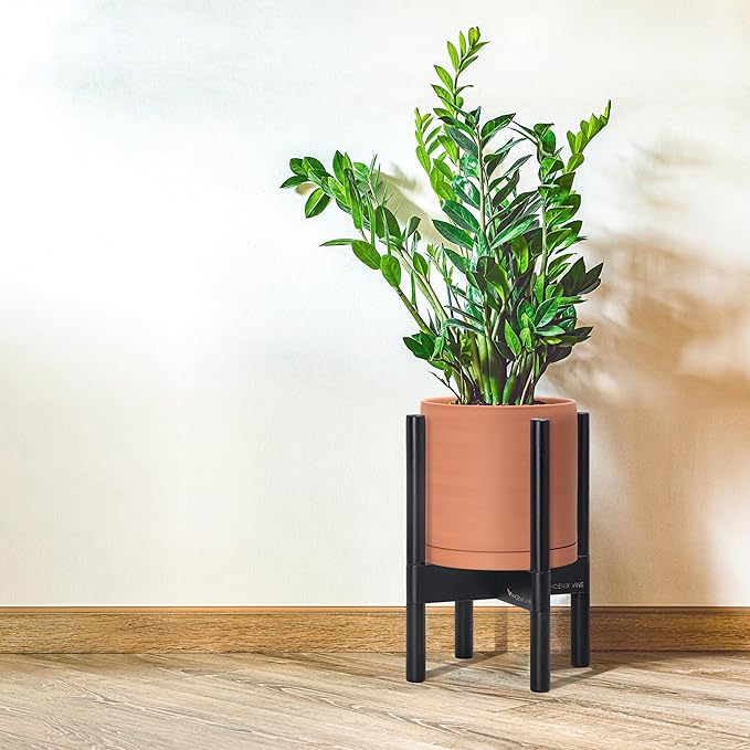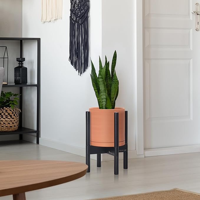 - A Complete Set: Mid-century terracotta planter, combined with a ebony wood stand that match perfectly together and looks great in anywhere.