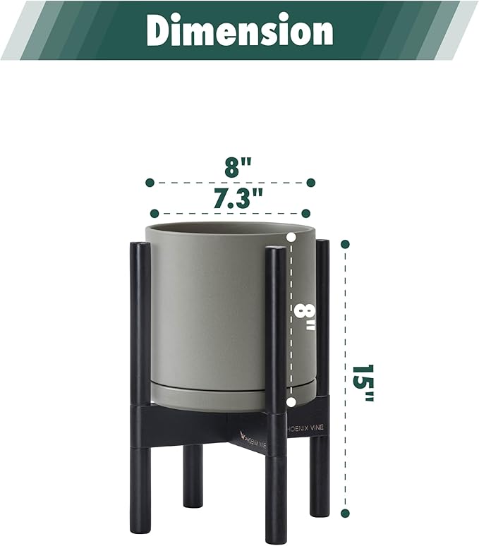 - 8 Inch Pot with Stand Set: Planter size: 8"Diameter x 8"H; pot with stand total height: 15 inch.