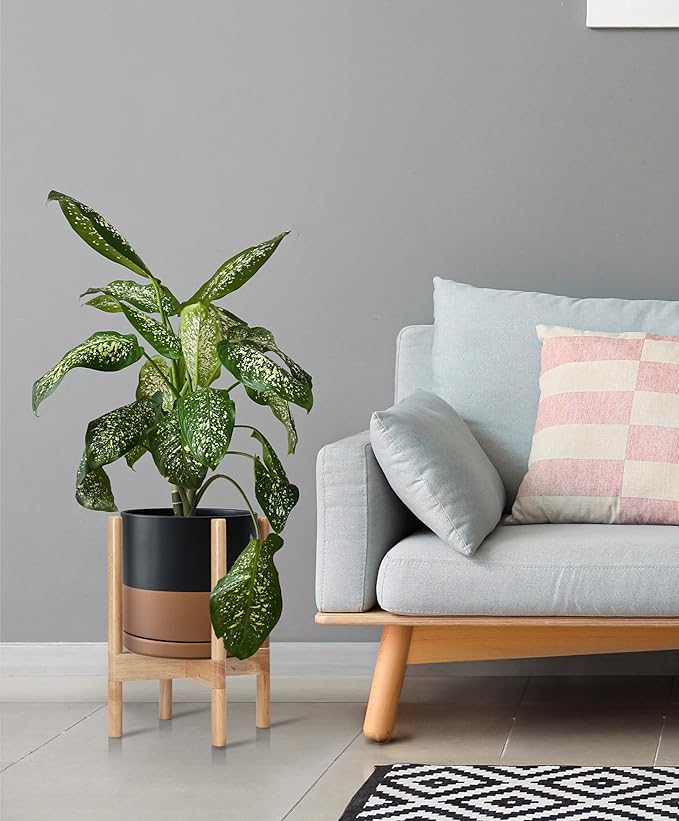 - A Complete Set: Mid-century ceramic planter, combined with a natural color, sculptural, solid wood stand that match perfectly together and looks great in anywhere.