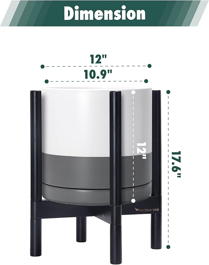 - 12 Inch Pot with Stand Set: Planter size: 11.8"Diameter x 11.8"H; pot with stand total height: 18.5 inch.