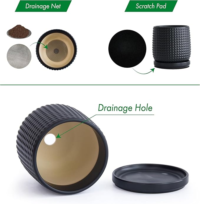 - Included: Each pot comes with drainage hole and fitting detachable drip tray.
