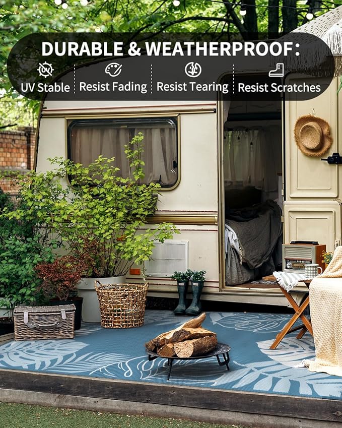 - RV traval&Camping: This camper must haves outdoor rug is ideal for picnics, gatherings, and RV trips! The lightweight outdoor camping carpet with foldable lines is easy to carry and saves space. Includes an extra carry bag and rug stakes for 6x9 ft, 8x10 ft and 9x12 ft. Grass-friendly, durable, and easy to clean, this outdoor rug enhances outdoor adventures.