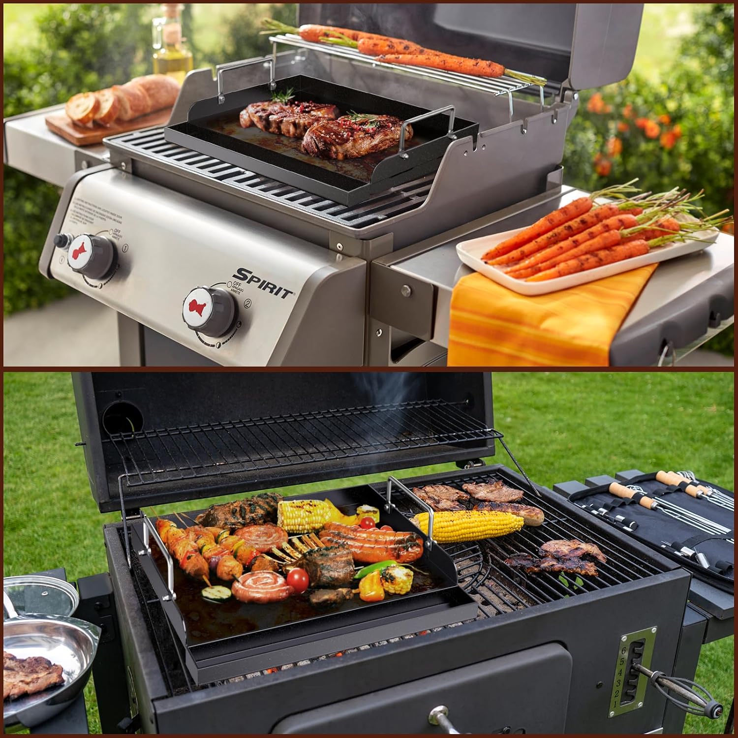 - 【Universal Compatibility 】Elevate your grilling game with the Uniflasy Universal Griddle, designed to fit most gas grills, charcoal grills. Dimension- 17 x 13 inches, this griddle is perfect for large meals, from sizzling steaks to pancakes and veggies. It's compatible with popular grill brands like Weber, Nexgrill, Charbroil, Kenmore, Camp Chef, and many more. Be sure to check your grill's dimensions before placing your order for a perfect fit