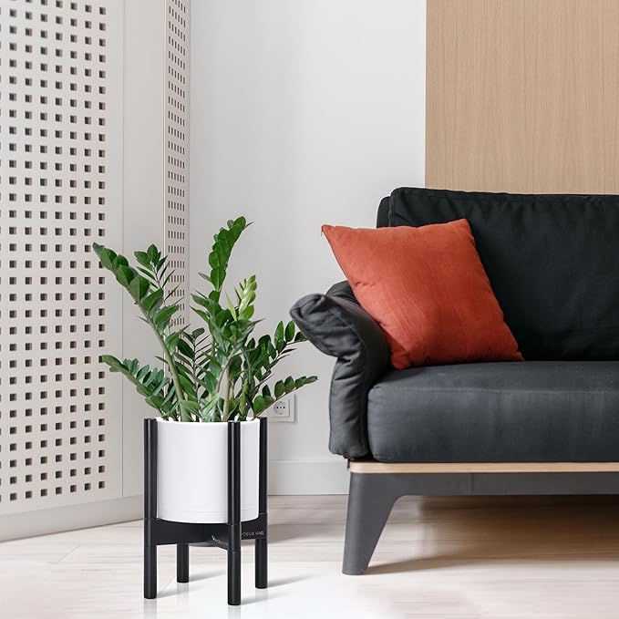 - A Complete Set: Minimalist plastic planter, combined with a sculptural, solid wood stand that match perfectly together and looks great in any home.