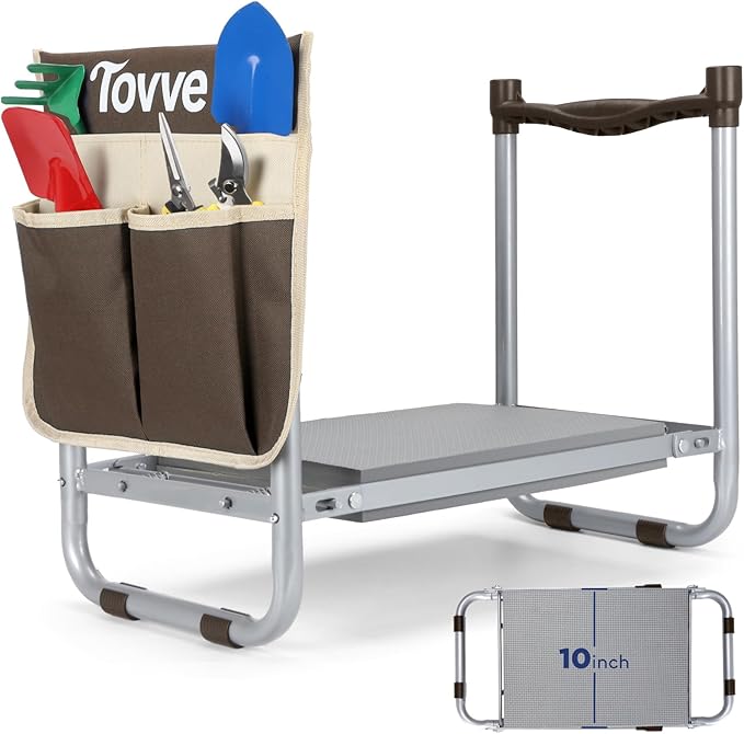 - 【2 in 1 Garden Stool】This 10-inch wide garden kneeling seat provides you with better comfort and support, making gardening easier. It can be used as a comfortable garden seat for pruning taller plants. It can also be laid flat on the ground as a supportive kneeling pad to avoid dust and weeds when kneeling to weed. Reduce the pressure on your back and knees when gardening.