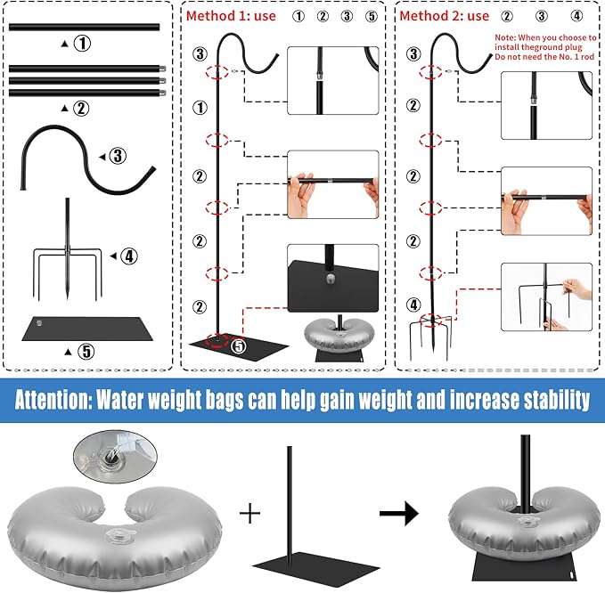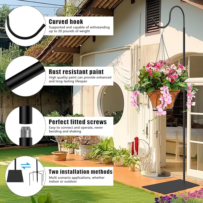 - Outdoor and Indoor Decoration: Our bird feeder pole will add charm for any activity, party or wedding, whether you are decorating the garden outdoors, hanging garden lights, bouquets, hummingbird feeders, etc. Or hang succulent plants indoors, etc. It can be well integrated into various decoration styles of homes, courtyards, and gardens