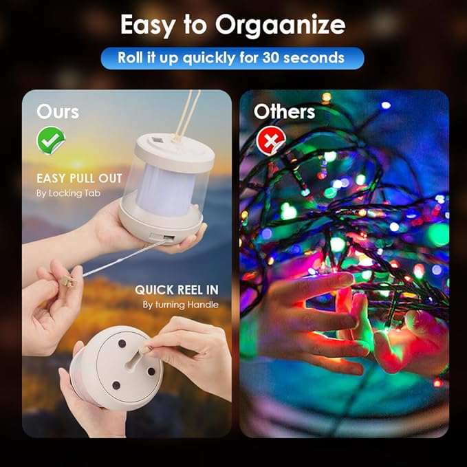 - Multifunctional Camping String Lights: 2-in-1 camping string lights is a camping equipment that integrates lighting and atmosphere creation, which can greatly improve the comfort and fun of outdoor activities. It can be used as an ordinary lighting lamp or can be turned into a string light through simple operation for Christmas trees, home decoration, tent decoration, birthday and holiday decoration, creating a warm and romantic atmosphere.