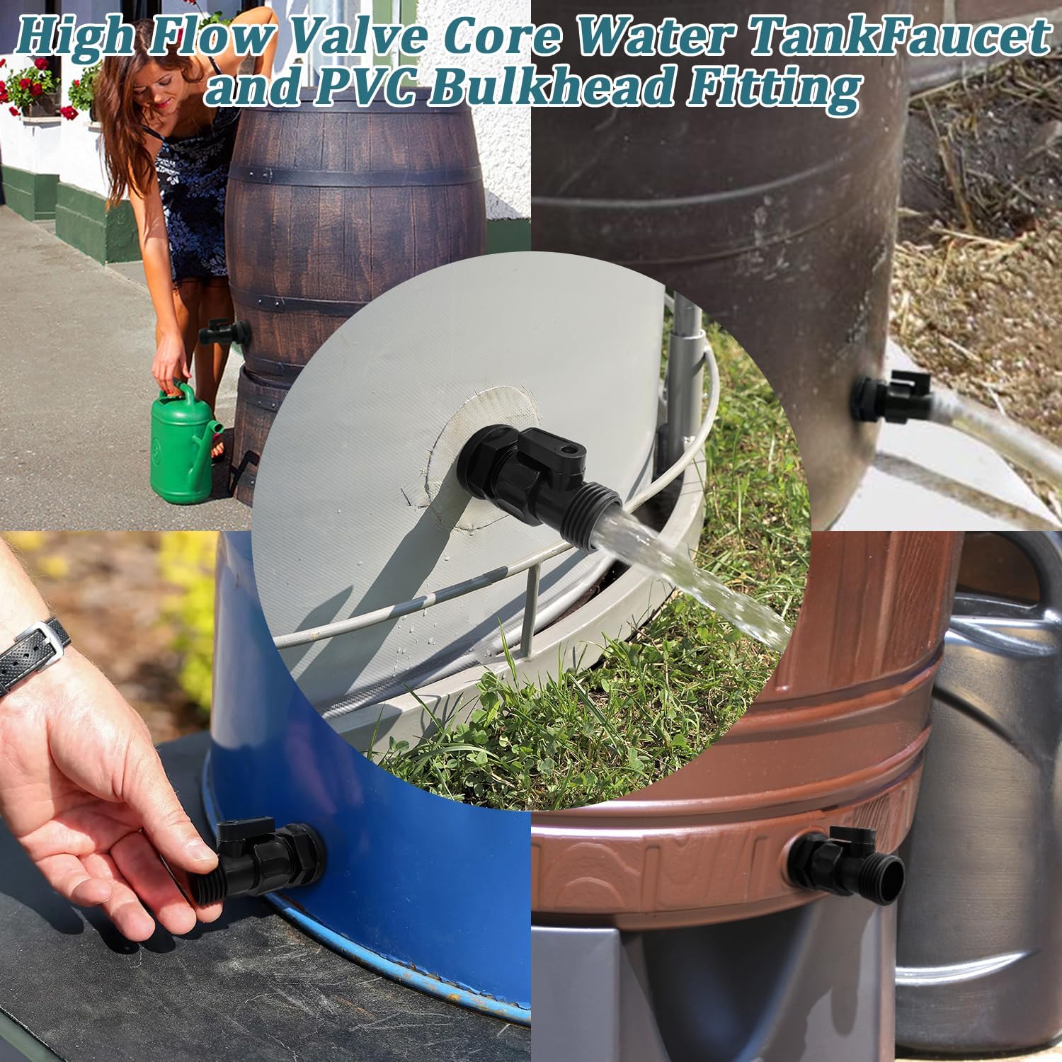 - Widely applicable: Garden hose shut-off valve+garden hose bulkhead fitting is suitable for water tanks, towers, inlets and outlets, rainwater buckets, homemade water storage buckets, as well as various pipes, accessories, hoses, faucets, etc