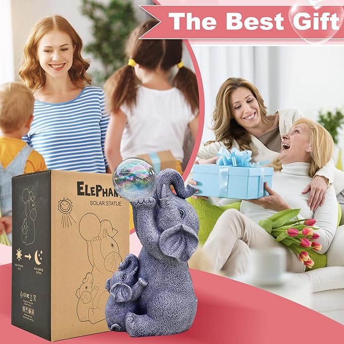 - 【Solar Powered】: The elephant statue with solar bubble light that charges during the day and automatically turns on at night, creating a beautiful illuminated effect in your garden or yard to enhances the ambiance of your outdoor space