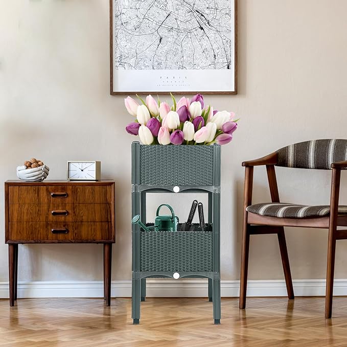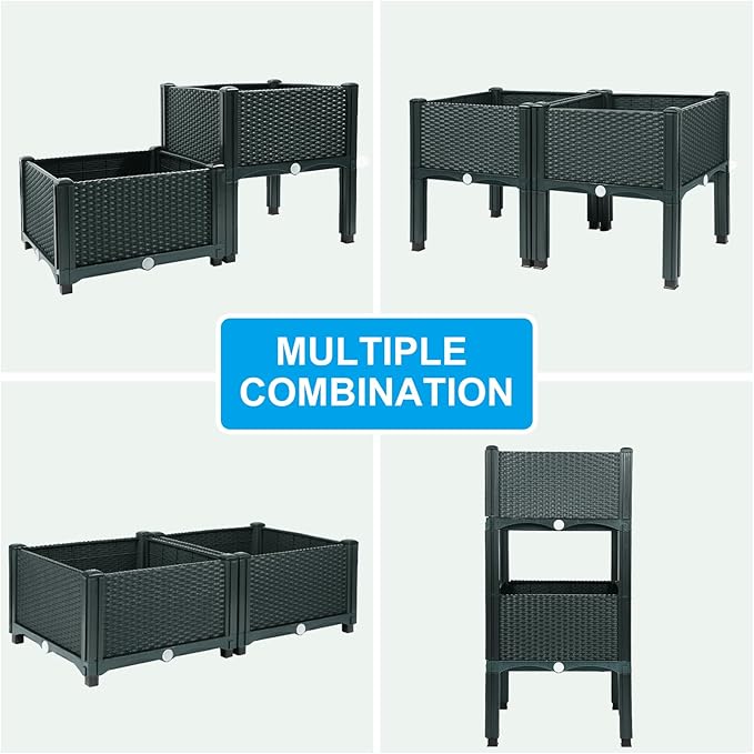 - ✔SIZE: Each planter box: 15.7''(W)x15.7''(D)x16.5''(H), taller than other plastic or metal garden boxes, provides ample growing space for indoor & outdoor plants and keeps pests away.