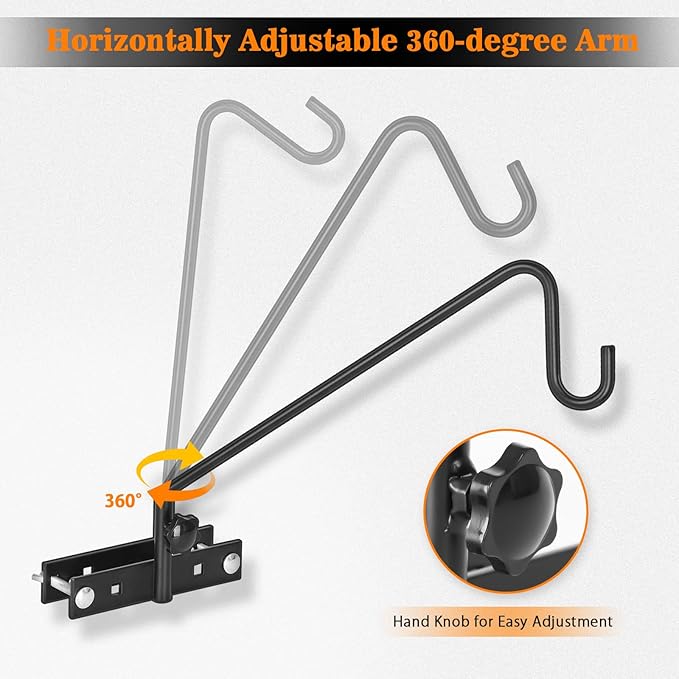- 【Easy to Install】: Deck hook for bird feeder includes all accessories, No extra tools required. Knobs and bolts can be manually tightened and loosened quickly for easy installation and removal.