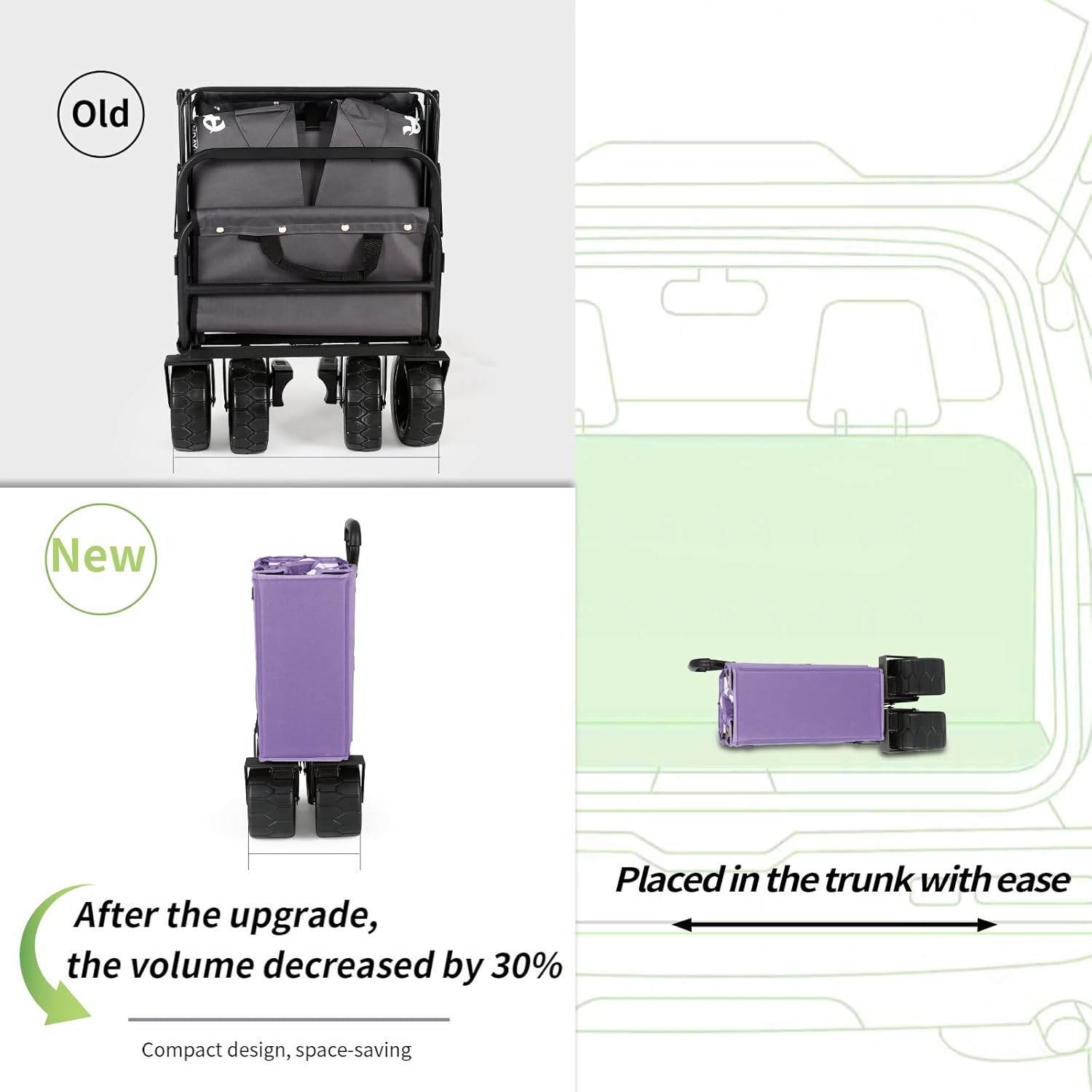 Whitsunday Collapsible Wagon with Tailgate and Big Wheel,Heavy Duty Utility Folding Wagons for Beach Camping Outdoor Purple