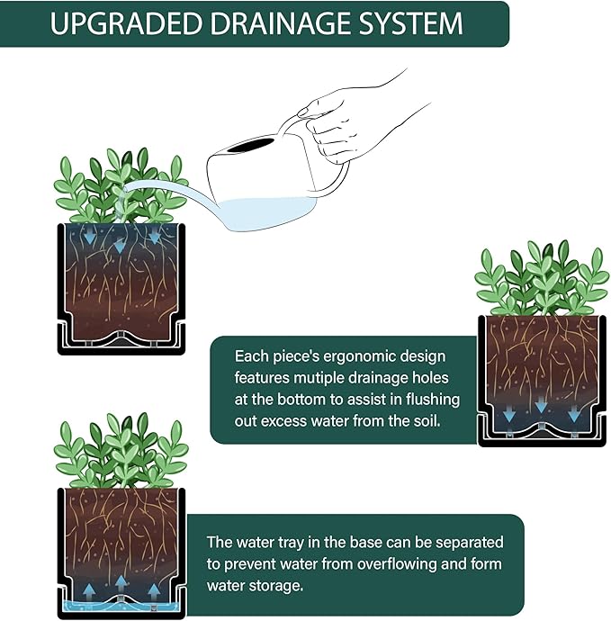 - Excellent Drainage and Tray: The pot features strategically placed drainage holes at the bottom, along with detachable saucers that fit perfectly. This ensures optimal drainage for your herbs, making it ideal for window herb gardens.