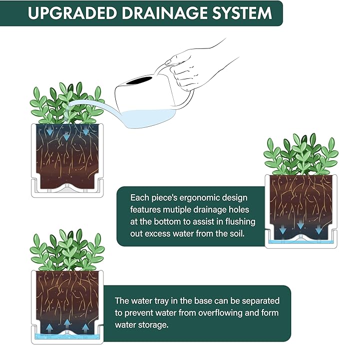 - Excellent Drainage and Tray: The pot features strategically placed drainage holes at the bottom, along with detachable saucers that fit perfectly. This ensures optimal drainage for your herbs, making it ideal for window herb gardens.