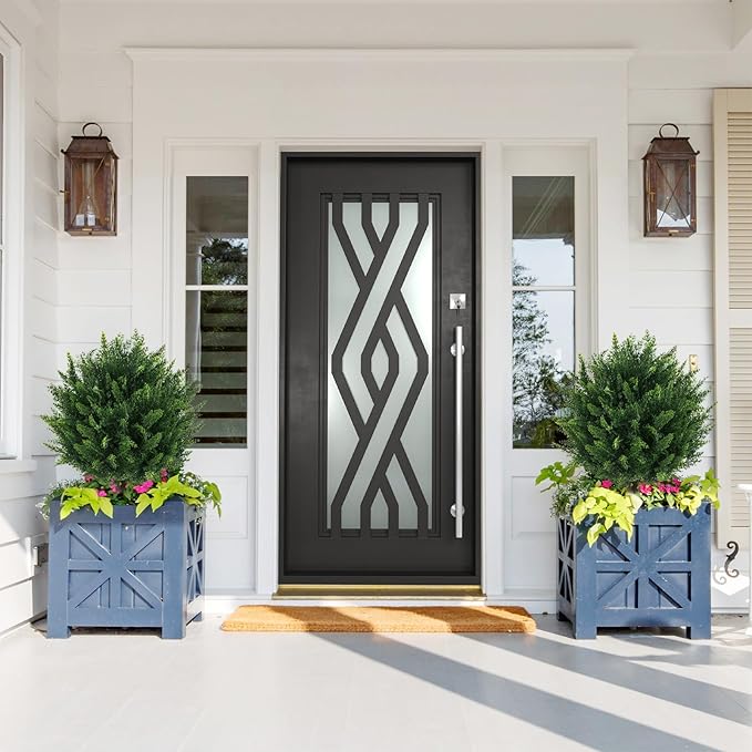 - 【WIDE USE】 The faux evergreen topiary boxwood ball porch trees pushed in the ground are perfect for enhancing a variety of settings. Whether the front porch, balcony, backyard, pergola, garden, patio or hedge, they would bring you a feeling of vitality and relaxation. It’s a great pick for home décor and a perfect gift choice. The more sets the more ornamental