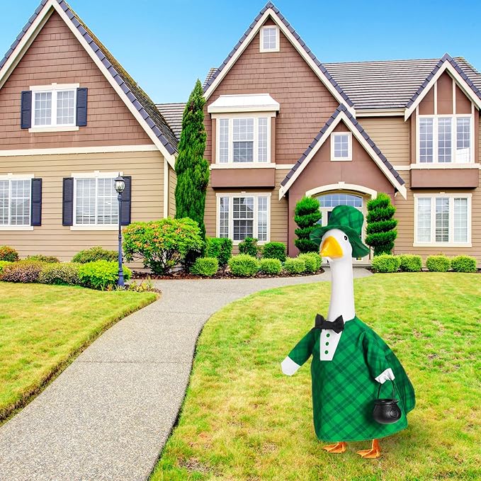 - Vibrant St Patrick's Day Design: the green plaid lawn goose suit uses classic green plaid, atmosphere fitting for any St Patrick's Day celebration; Its aesthetic appeal makes it ideal not just as a St Patrick's Day goose outfit but for many festive occasions