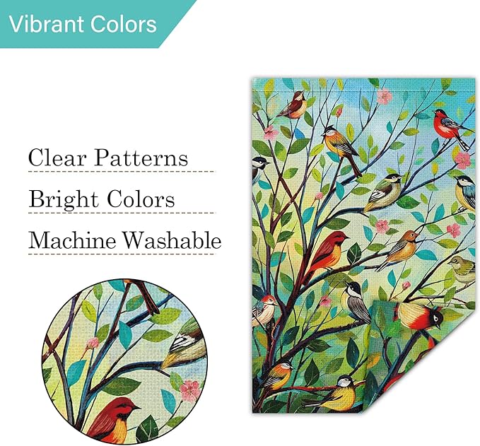 - For Spring Home Garden Decor: Adorned with blossoming trees and cheerful birds, our garden flag brings the refreshing spirit of spring to your outdoor space. Itโs the perfect addition to brighten your garden and create a welcoming atmosphere for guests.