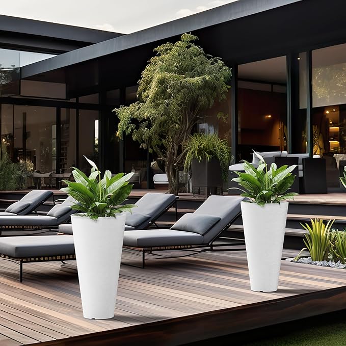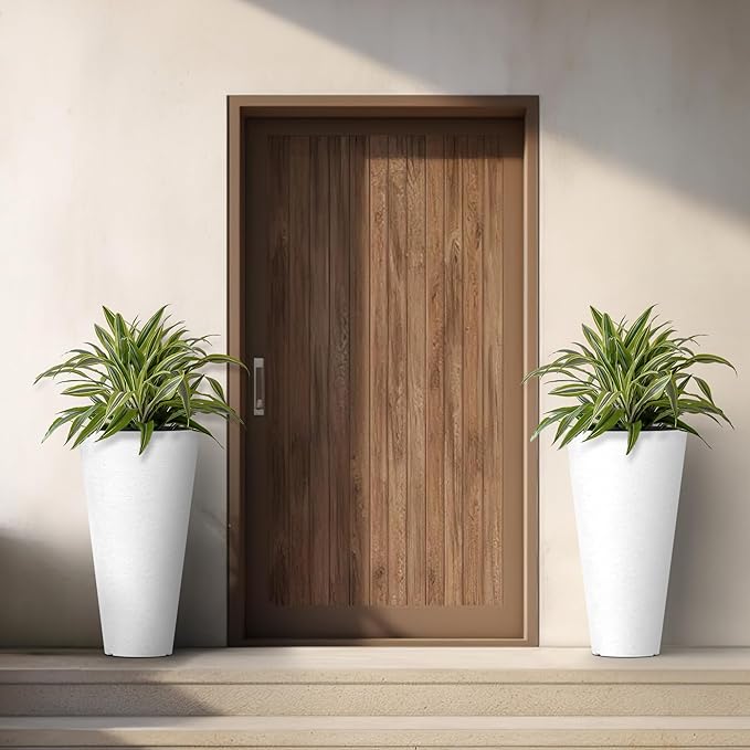 - Minimalist Chic - Elevate your space with these tall and wide planters, embodying sleek lines and a contemporary White finishโa defining trend in modern landscape design. The textured surface introduces an artistic touch to your garden, patio, office, living room, or front door area.