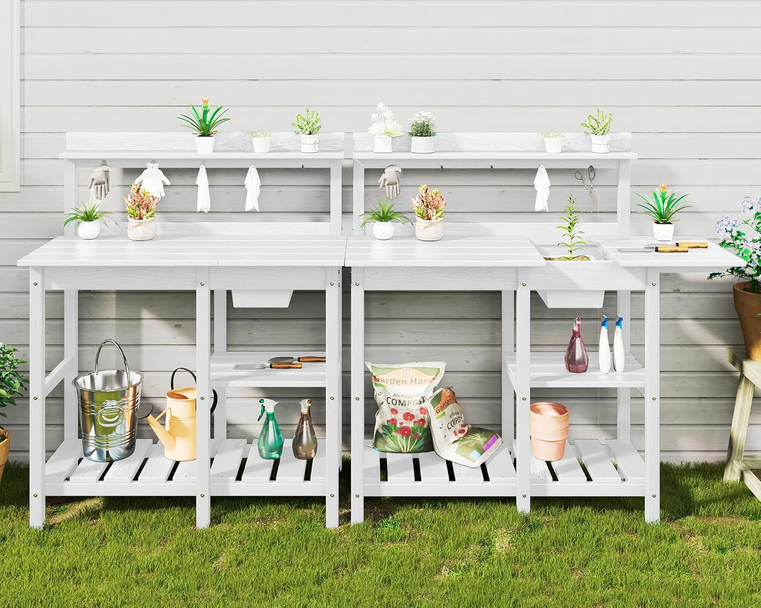 SERWALL Potting Table Set of 2 for Outside All Weather Use- White