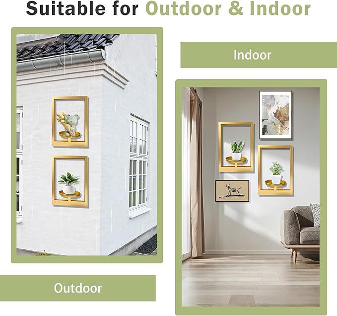 - 【Durable Metal Plant Frames】Plant wall shelf crafted from high-quality metal with exquisite finishing, rust and corrosion resistance, suitable for outdoor and indoor use,our plant frames wall decor not only provide sturdy support for your plants but alsoEnsure a stylish look. Round tray ensure stability and prevent plants from falling down.