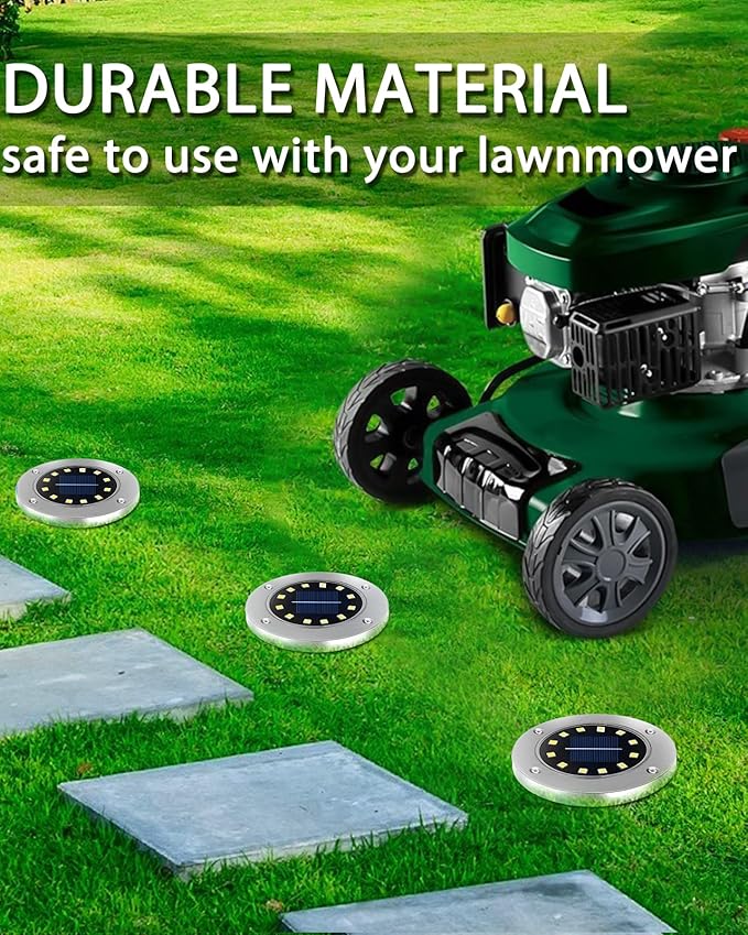 - Robust Waterproof Design: Engineered with IP65 waterproof technology, our solar garden lights are built to withstand the toughest outdoor conditions, ensuring long-lasting and reliable performance. Size: diameter 4.5 inches; Brightness: 8 lumens