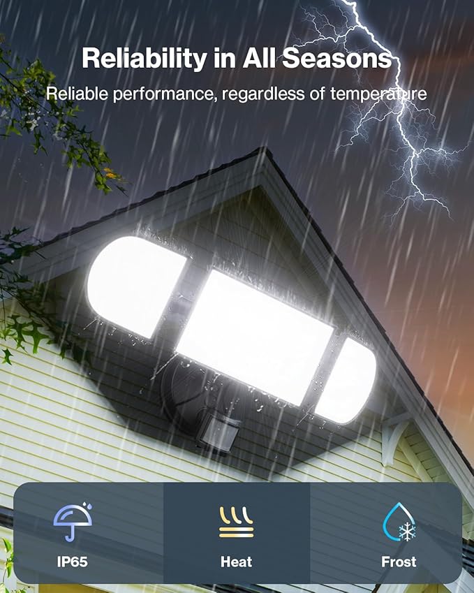 - Built to Last: With an IP65 waterproof rating, these motion detected lights withstand any weather โ rain, snow, extreme temperatures, ensuring reliable performance year-round.