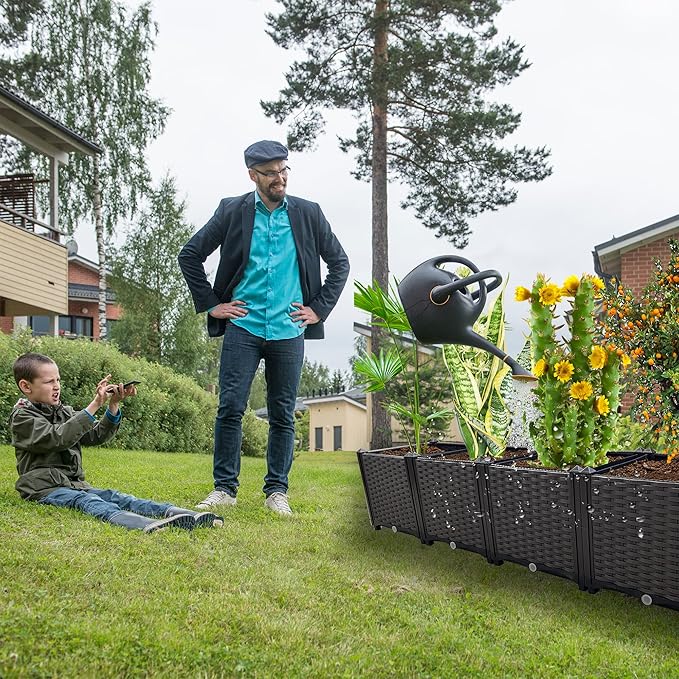 - 🌻【Durable Outdoor Growth Box】Our elevated planter boxes are made of reinforced PP material with a rattan pattern that is lightweight, high load bearing and reusable.