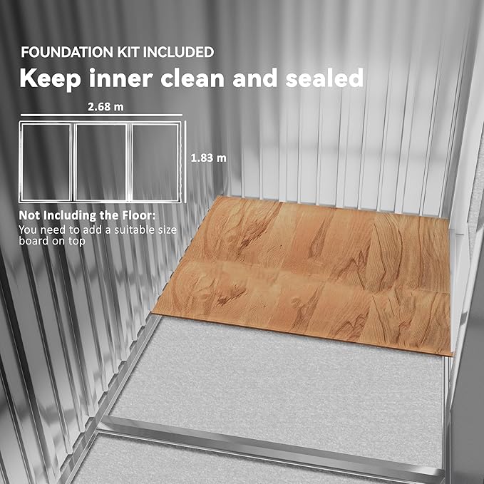 - Weather Ready: This metal shed has a water-safe galvanized steel frame, which makes it great for year-round outdoor use. It also has a foundation kit, which enhances stability by itself or keeps the space clean and sealed as a floor with the help of some wood boards.