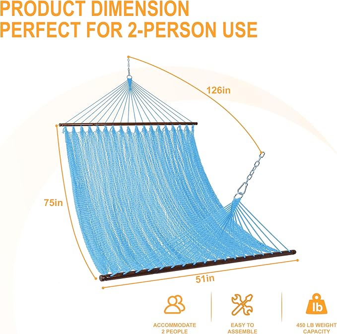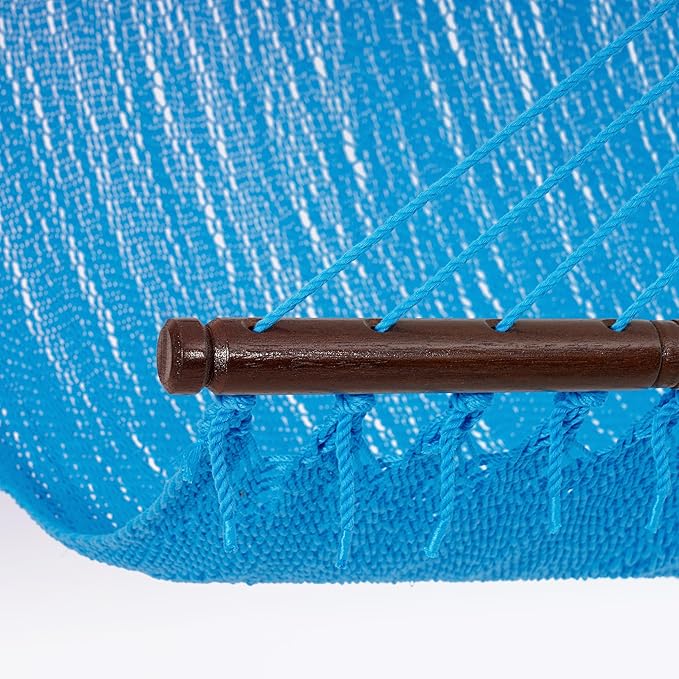 Lazy Daze Hammocks 10.5 FT Double 2 Person Caribbean Rope Hammock, Hand Woven Polyester Hammock with Spreader Bars, for Outside Outdoor Backyard Patio Poolside,450 LBS Capacity,SkyBlue