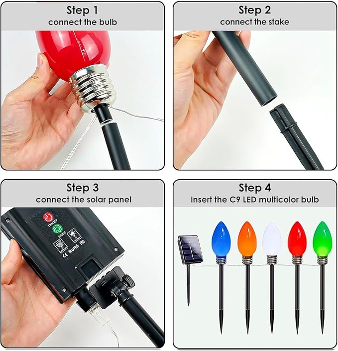 - Great Design Ideas for Outdoor Christmas Decorations: 10-Pack Jumbo C9 Solar Christmas Lights, Long Lasting with Larger Capacity Built-in Battery & Larger Size Solar Panel, IP65 Waterproof Performance, Memory Function & Auto On/Off & Multiple Lighting Modes.
