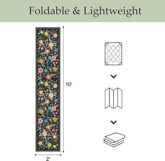 GENIMO Indoor Outdoor Area Rug 2' X 10' Waterproof, Washable Runner Rug Non Shedding, Easy Cleaning Floral Outdoor Carpet for Patio, Living Room, Bedroom, Entryway, Porch, Dining Room, Black