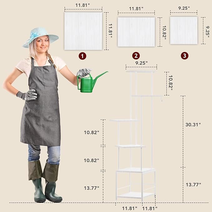 - [Spacious 6 Tiers] This tiered plant stand offers six levels of storage, allowing you to showcase a variety of plants in different heights and styles. The bottom tier features a protective railing to secure pots, while the middle tier includes a side plant holder hook, perfect for hanging baskets. Whether youโre decorating a plant rack indoor or adding greenery to a cozy corner, this stand provides ample space without taking up too much room, making it a must-have for corner plant stands for indoor plants