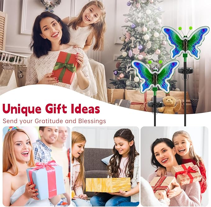 - DESIGN: These solar garden lights are a stylish addition to any landscaping design. Perfect for lining outdoor garden pathways, or as creative highlights for any patio, lawn, or landscaping project. Included are (2) Butterfly neon stake lights and (2) ground stakes.