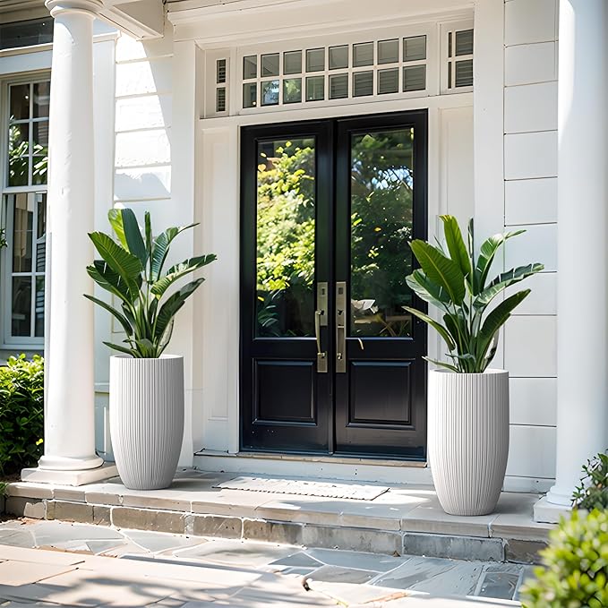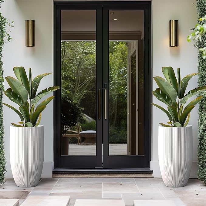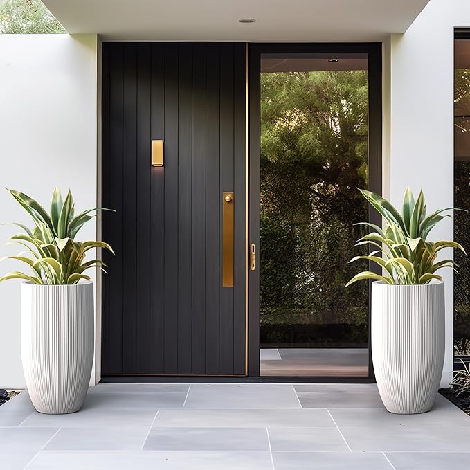 - Large & Versatile โ Whether displaying a vibrant plant indoors or elegantly placed on your front steps, porch, or patio, this spacious planter effortlessly adapts to any setting. Its distinctive style complements a wide range of dรฉcor, from modern and minimalist to traditional, adding a touch of sophistication and charm to your space.
