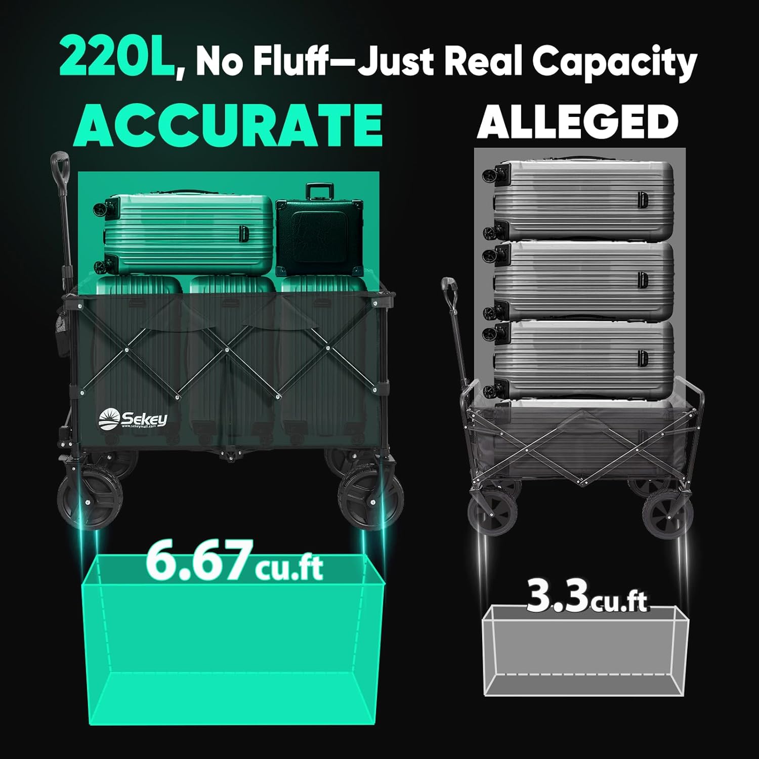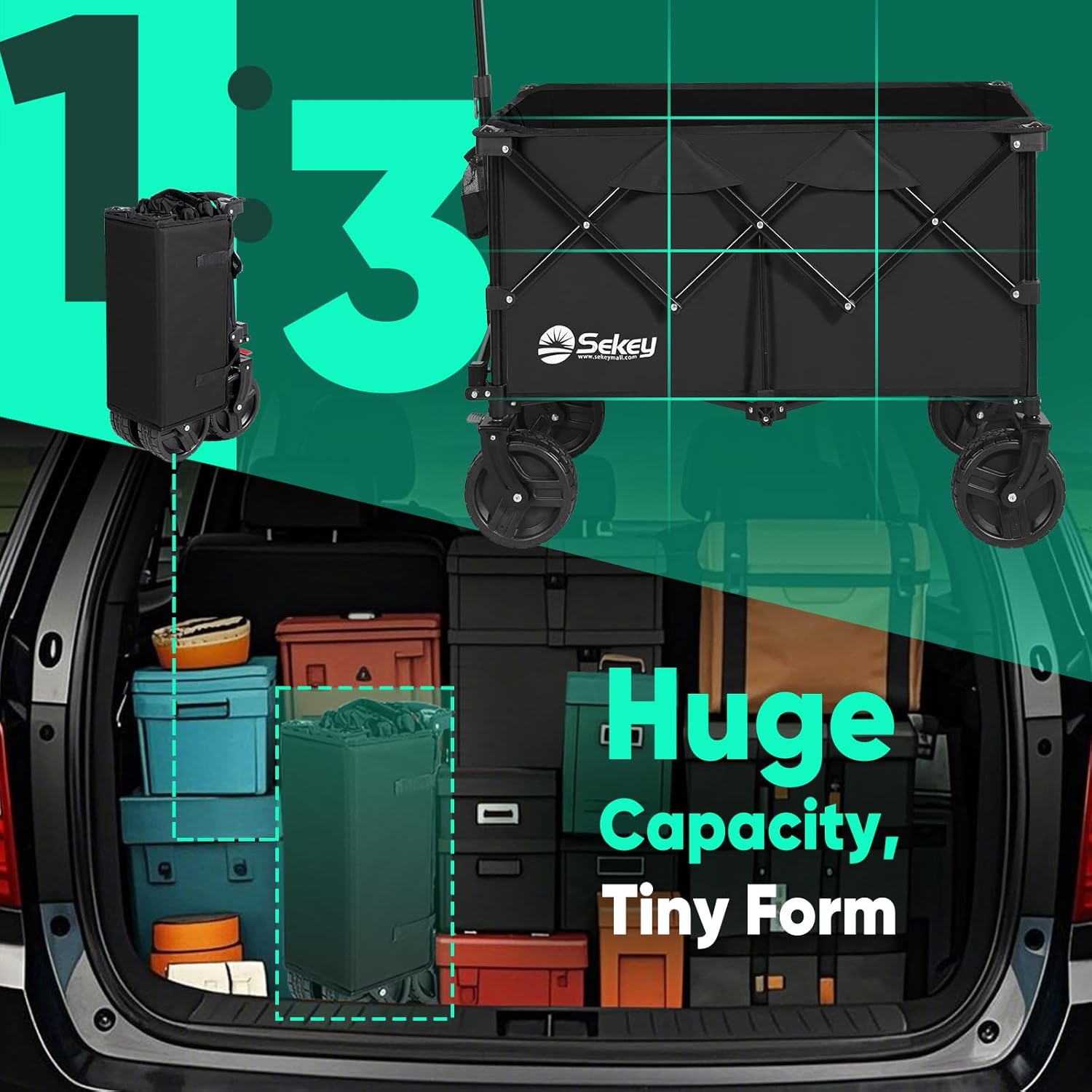 - 【𝐆𝐨 𝐀𝐧𝐲𝐰𝐡𝐞𝐫𝐞 𝐖𝐡𝐞𝐞𝐥𝐬】: Featuring 𝟖" 𝐝𝐢𝐚𝐦𝐞𝐭𝐞𝐫 𝐰𝐡𝐞𝐞𝐥𝐬 𝐚𝐧𝐝 𝟑" 𝐰𝐢𝐝𝐞 𝐭𝐫𝐞𝐚𝐝𝐬, Sekey wagon glides effortlessly over sand and rough terrain. The 𝐚𝐧𝐭𝐢-𝐬𝐥𝐢𝐩 𝐫𝐮𝐛𝐛𝐞𝐫 strip enhances traction and reduces vibrations, while the 𝐛𝐮𝐢𝐥𝐭-𝐢𝐧 𝐛𝐫𝐚𝐤𝐞𝐬 provide reliable stopping power wherever you go.
