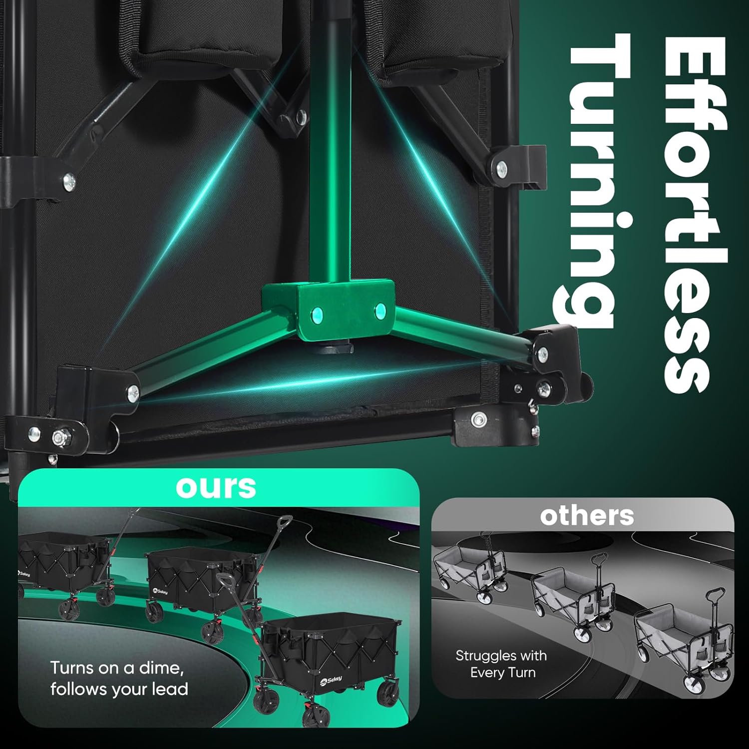 Collapsible Wagon Cart with Big All-Terrain Beach Wheels, Foldable Heavy Duty Wagons with Cup Holders, Utility Carts for Camping, Garden, Outdoor, Grocery, Sports. Black
