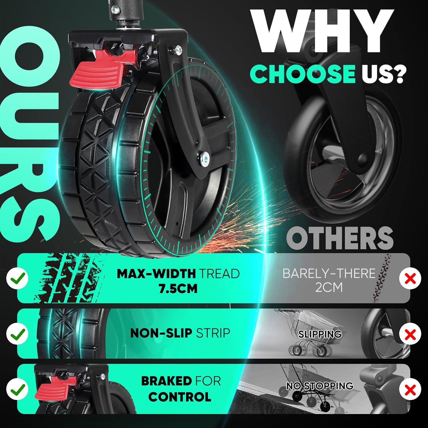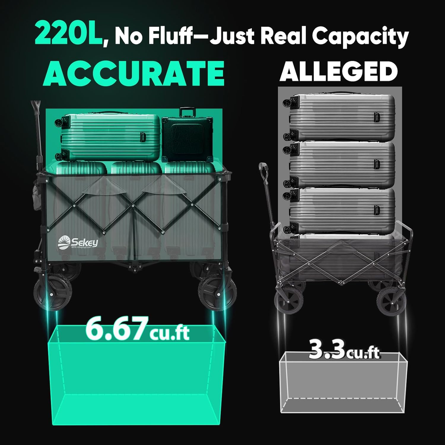 - 【𝐆𝐨 𝐀𝐧𝐲𝐰𝐡𝐞𝐫𝐞 𝐖𝐡𝐞𝐞𝐥𝐬】: Featuring 𝟖" 𝐝𝐢𝐚𝐦𝐞𝐭𝐞𝐫 𝐰𝐡𝐞𝐞𝐥𝐬 𝐚𝐧𝐝 𝟑" 𝐰𝐢𝐝𝐞 𝐭𝐫𝐞𝐚𝐝𝐬, Sekey wagon glides effortlessly over sand and rough terrain. The 𝐚𝐧𝐭𝐢-𝐬𝐥𝐢𝐩 𝐫𝐮𝐛𝐛𝐞𝐫 strip enhances traction and reduces vibrations, while the 𝐛𝐮𝐢𝐥𝐭-𝐢𝐧 𝐛𝐫𝐚𝐤𝐞𝐬 provide reliable stopping power wherever you go.