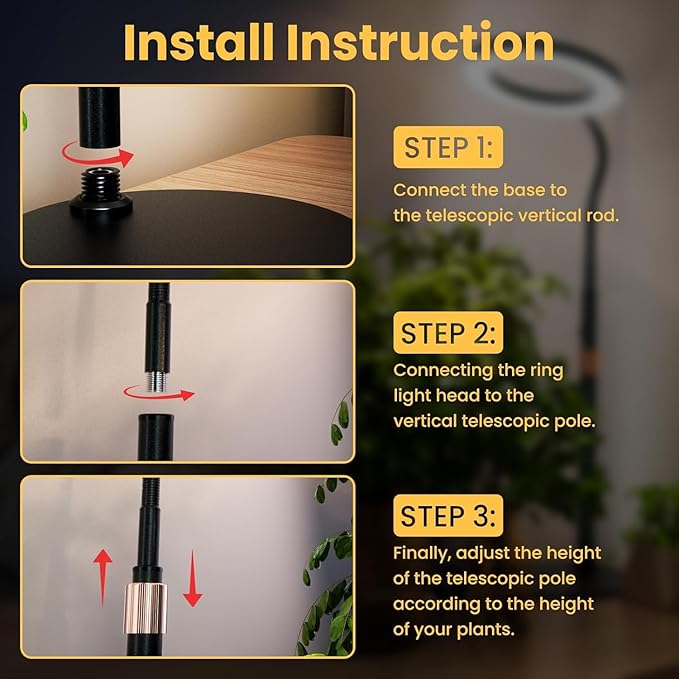 - Equipped with free height adjustment function: 15 '-26 ". You only need to adjust the telescopic rod to create the ideal lighting height for you!
