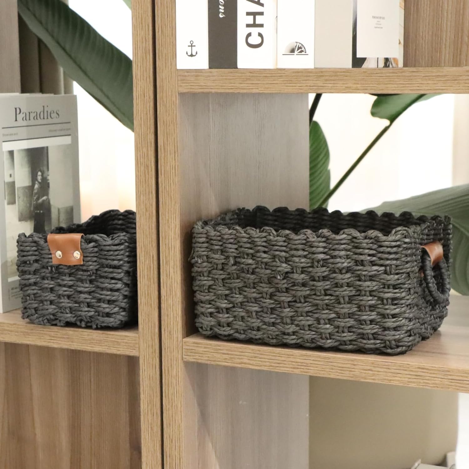 - MULTI-PURPOSE: Available in three convenient sizes, this versatile set offers creative ways to meet all your storage needs. Whether you're tidying up your nightstand, organizing bathroom shelves, or clearing clutter from your living room surfaces, these baskets adapt seamlessly to every corner of your home, adding a touch of practical charm to your everyday life.