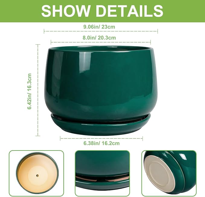- Dimensions: This ceramic planter pit measures 9.06" x 9.06" x 6.42". 9 inch pots for plants is an ideal choice for growing olive tree, bonsai tree, snake plant, money tree, succulents, monstera, cacti, aloe vera, Basil, orchids, geranium plant, pothos, peace lily, ZZ plants and other indoor & outdoor plants