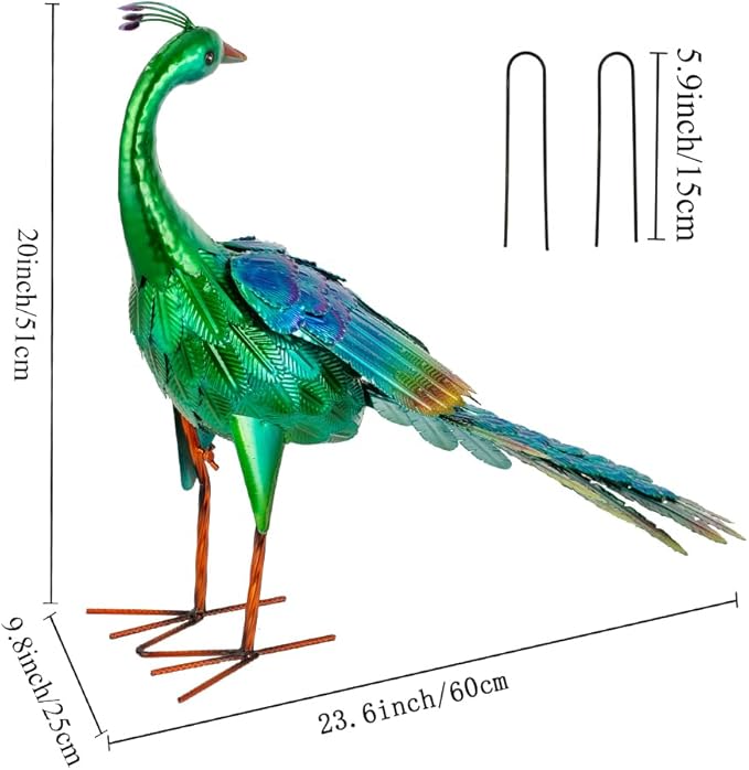 - Weather Resistant: The peacock sculpture is made of metal and has excellent weather resistance. The bright colors make the garden sculpture bloom with charming radiance, adding a touch of brilliance to your garden life